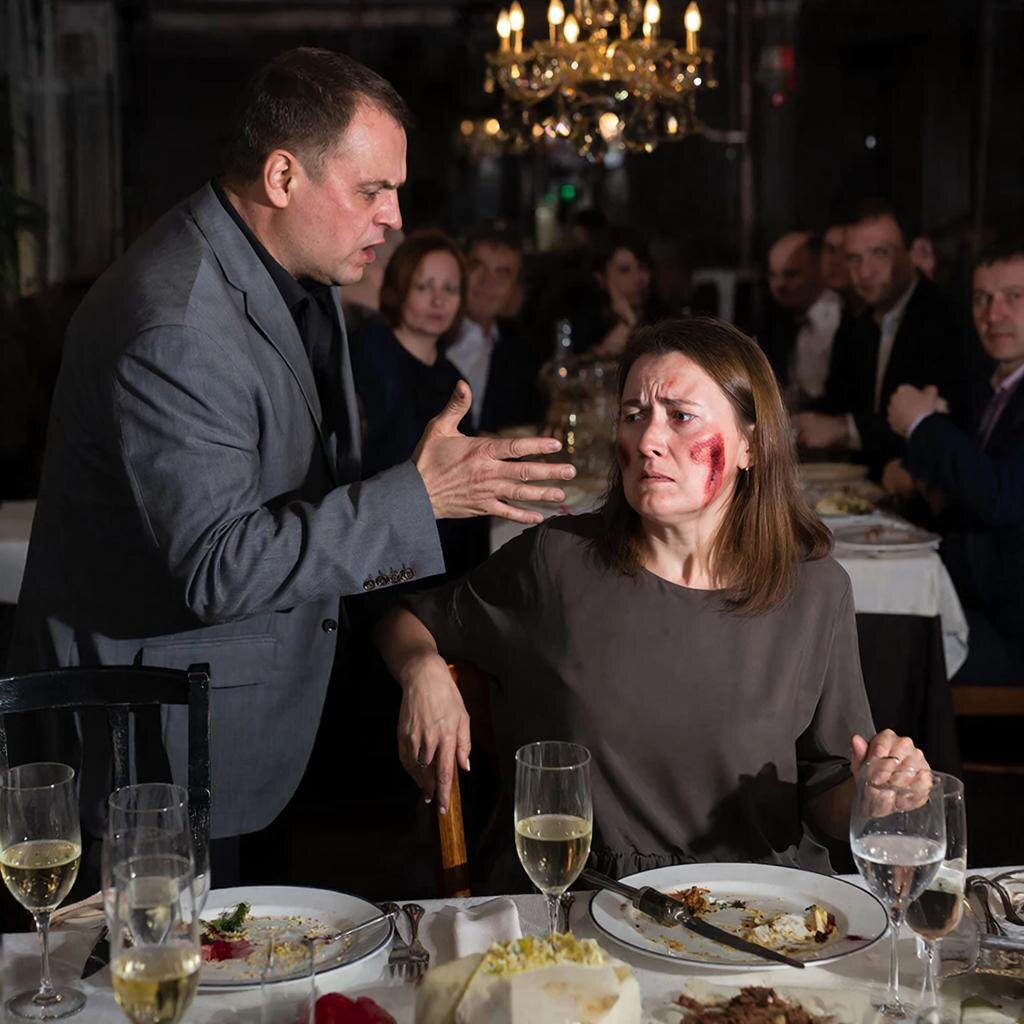 Тридцать человек в зале. Свекровь, свёкор, золовки с мужьями, кузены, тётушки. Все в нарядных платьях и костюмах. Шампанское в бокалах. И — тишина. Ни возмущения, ни окрика. Никто не двинулся. Никто не моргнул. Они смотрели. Просто смотрели на то, как муж бьёт жену. На юбилее. За праздничным столом.