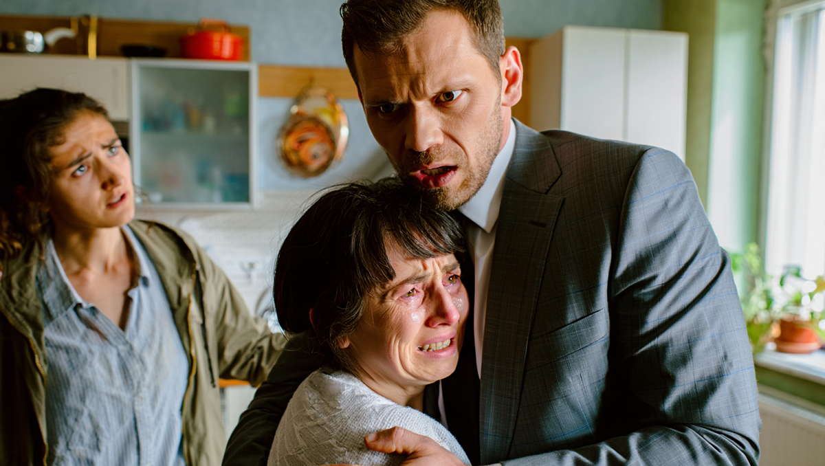 Андрей хлопнул дверью. Катя сидела на стуле, уткнувшись лицом в ладони. Галина Петровна подошла к ней, обняла.