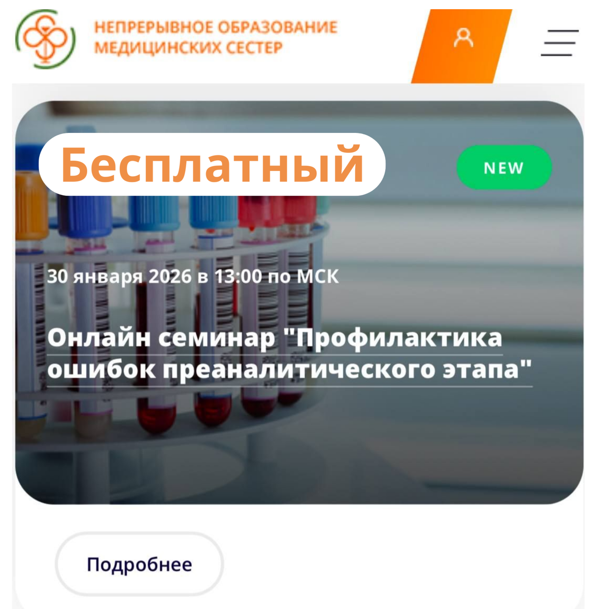 Бесплатный онлайн-семинар: «Профилактика ошибок преаналитического этапа» 🗓 30 января в 13:00 Уважаемые коллеги, приглашаем всех на бесплатный вебинар на портале НОМС. Чтобы принять участие, достаточно зарегистрироваться на портале НОМС, если вы ещё не делали этого ранее. ✅ Доступ к вебинару бесплатный, подписка не требуется. На вебинаре вы узнаете: - Основные причины возникновения ошибок преаналитического этапа (гемолиз, хилез, сгусток в пробирке и др.) - Последствия для пациента и медицинской организации при возникновении ошибок преаналитики - Алгоритм профилактики ошибок преаналитики - Примеры из практики нарушения сбора биоматериала - Основные нарушения и последствия неправильного хранения и транспортировки биоматериалов Подробнее и регистрация: Ссылка на вебинар Ждем всех! 🧡