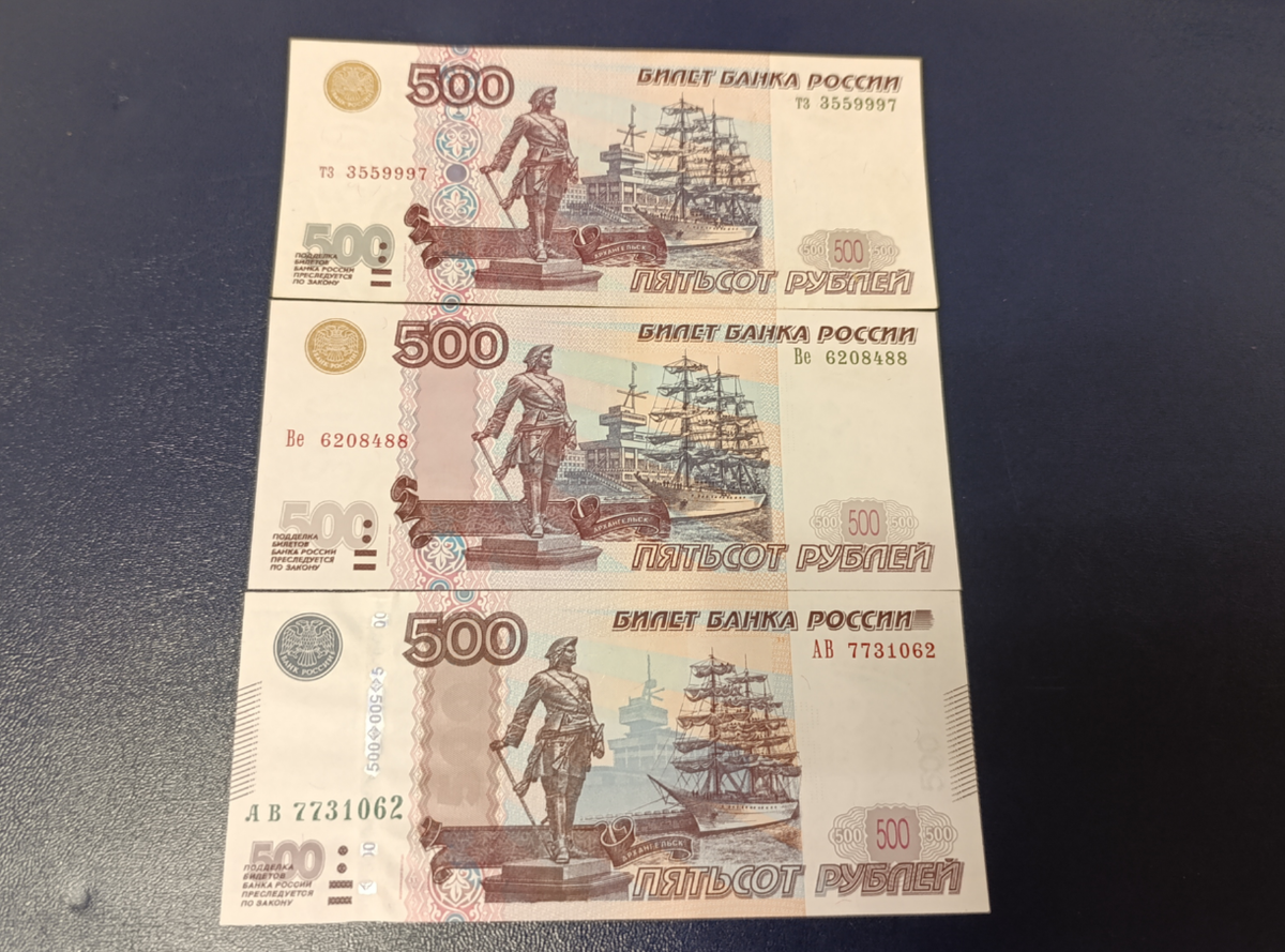 До 1 января 2001 года самым большим номиналом среди купюр, находящихся в обращении, был номинал в 500 рублей. Как мы помним, в ходе деноминации эта купюра в 500 рублей заменила купюру номиналом 500 тысяч рублей. С тех пор знакомая всем бумажная денежка с изображением памятника Петру I и парусника в порту Архангельская была трижды "модифицирована". Итого на сегодняшний день мы имеем, как минимум, четыре варианта купюры в 500 рублей: - без модификации - модификации 2001 года - модификации 2004 года - модификации 2010 года Первые три модификации не особо отличаются друг от друга, а вот модификация 2010 года получила заметные изменения оборотной стороны. В моей коллекции бумажных денег нашей страны имеется только 3 вида купюры. К сожалению, когда я начал их собирать, то варианты "без модификации" уже покинули обращение "естественным путём". Коллекционеры, которые собирают бумажные деньги России, чаще всего стремятся, чтобы в альбоме присутствовали купюры всех четырех модификаций (как