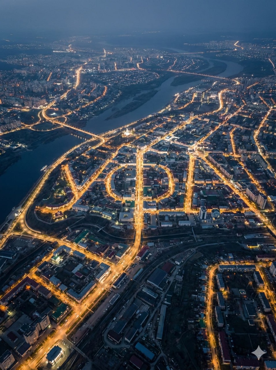 ✔️ Инструкция: Для этого заходим в VeoSeeBot или на сайт , выбираем "Работа с изображениям", Nano Banana Pro и пишем промпт ниже: Ночной вид города [ГОРОД] с высоты полёта самолёта. Камера расположена высоко над городом, лёгкий наклон под углом (oblique aerial view), с естественной перспективой, глубиной и ощущением масштаба. Город полностью виден в кадре. Освещённые улицы, проспекты и магистрали формируют читаемое слово «[ГОРОД]», organically integrated into the real street layout — как будто сам город сложился в это слово за счёт света и планировки. Слово читается только через силуэты и свет улиц, без ощущения искусственного шрифта или наложенной надписи. Уличное освещение — тёплый городской свет фонарей и окон. Общая ночная палитра — глубокие тёмно-синие и графитовые тона, мягкий атмосферный haze на расстоянии (эффект высоты полёта). Автоматически сохранить реальную идентичность города [ГОРОД]: — географическое положение (море, река, горы, равнина — если присутствуют), — хара