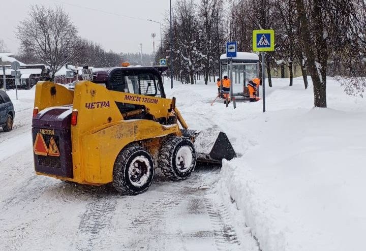 В течение дня в Краснознаменске, силами коммунальных служб, проводится механизированная уборка снежного покрова, как с проезжих частей
