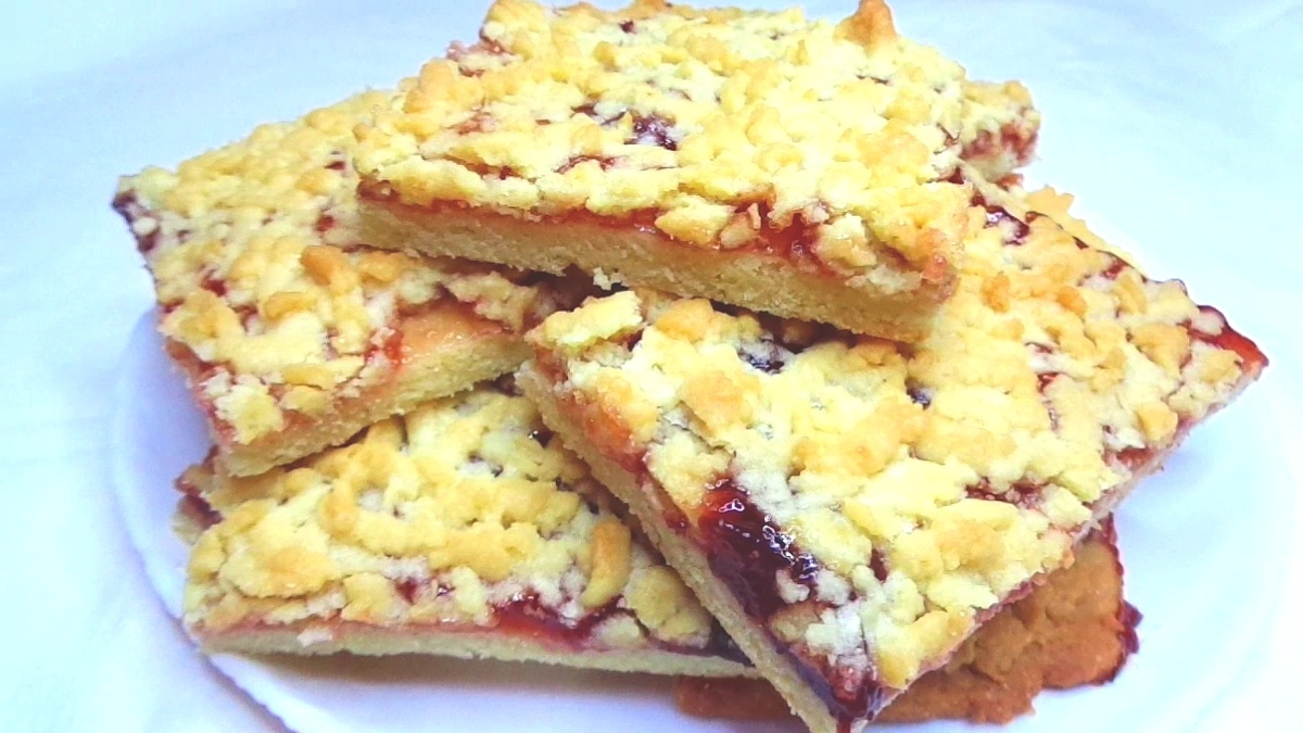 Аромат свежей выпечки наполняет дом теплом и уютом, обещая сладкое чаепитие в кругу близких. И сегодня главный герой, это тёртый пирог с джемом, простой в приготовлении, но неизменно восхитительный на вкус. =================== Яйцо - 1 шт. Сахар - 130 гр. Соль - щепотка. Сливочное масло - 180 гр. Мука - 350 гр. Разрыхлитель - 0,5 ч.л. Джем или варенье (густое) - по вкусу. ====================================== 1. Яйцо взбить с сахаром до побеления и пышности массы. 2. Добавить растопленное сливочное масло, перемешать миксером. 3. Добавить щепотку соли и ещё раз хорошо перемешать. 4. К муке добавить разрыхлитель, перемешать. 5. Добавить муку к жидким ингредиентам, замесить тесто, сначала ложкой потом рукой. Собрать тесто в шар, положить в пакет или в пищевую плёнку. Убрать тесто в морозилку на 40 минут. 6. Спустя время, достать тесто и разделить на две не равный части, малую часть теста убрать в пакет и положить обратно в морозилку. 7. Оставшееся тесто раскатать на листе пергамента в к