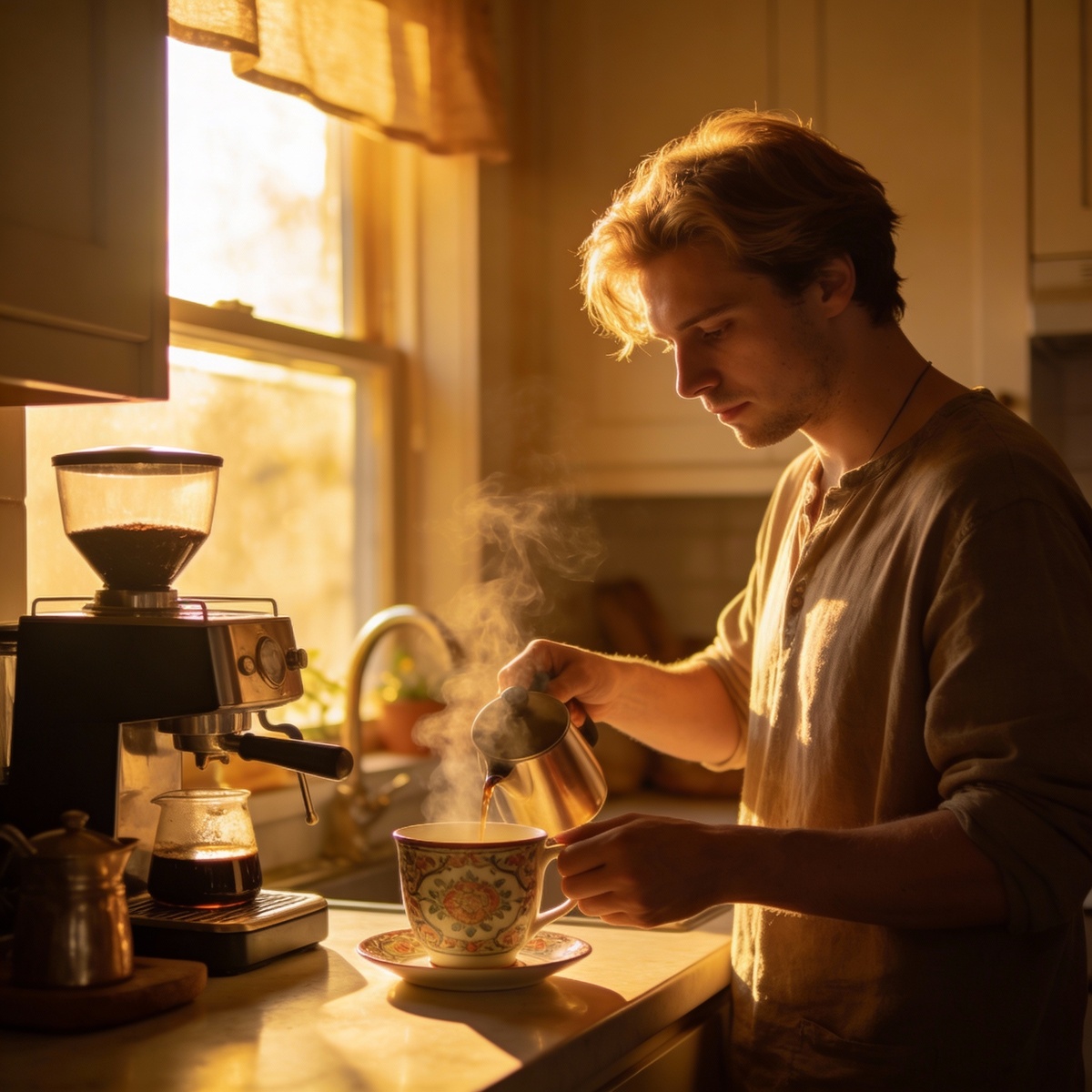 Рутина: Вы делаете кофе, думая о встрече через час, проверяя телефон, механически.