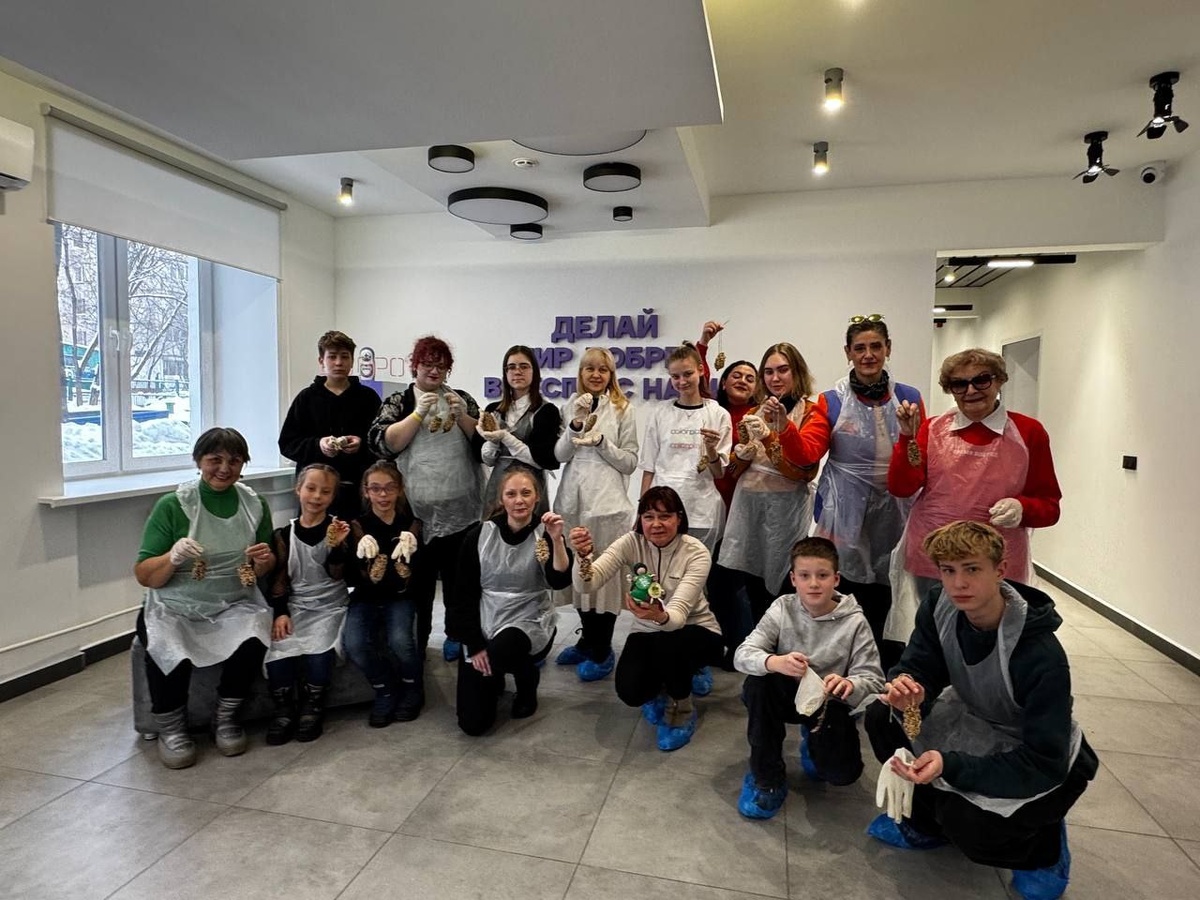 С наступлением холодов и большим количеством осадков, снежный покров в городе достигает от 50-70 см. зимующих пернатых ждет тяжелое испытание: нужно добывать корм, чтобы дожить до весны. Надежда предложила всем любителям птиц, создать экокормушку собственными руками с минимальными материальными затратами. Основа для кормовой смеси в этот раз оказалась обыкновенная еловая шишка плюс полученные знания по правильному приготовлению самой смеси. Немного фантазии по закреплению биомассы в шишке и экокормушка готова! Конечно, какой праздник без подарков, каждый участник получил не только свою кормушку, но и бесценные знания по зимовке птиц и по организации правильного кормления. Хотите стать еще ближе к природе вступайте в ряды Эковолонтеров от Мосволонтер и РЭО, посещайте Добрые места и подписывайтесь на наши новости на сайте РЭО. Организатор мероприятия — эксперт Российского экологического общества, Серебряный волонтер: Надежда Трушина