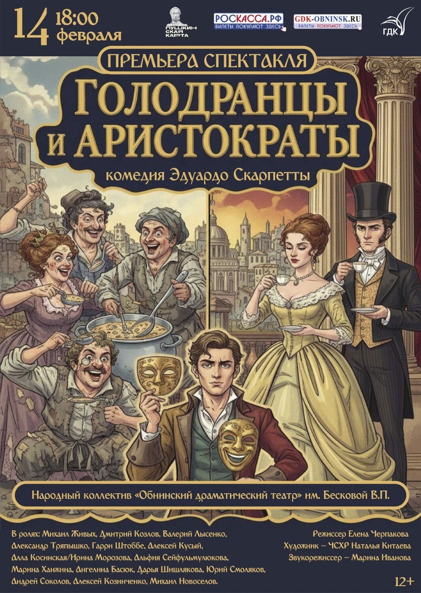 🎭14 февраля в 18:00 в ГДк в Обнинске состоится премьера спектакля «Голодранцы и аристократы» народного коллектива «Обнинского