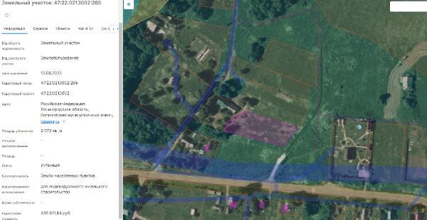 Название: Земельный участок с кадастровым номером 47:22:0213002:265, площадью 2072 кв