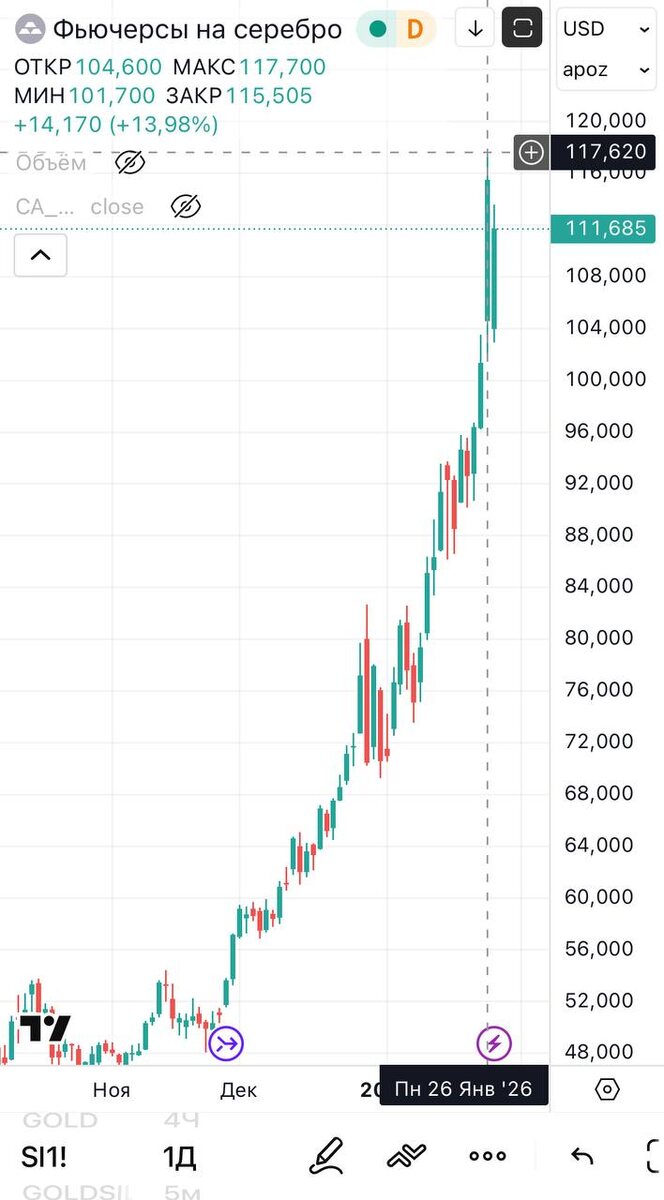 🎉🎊Вчера цена на серебро достигла 117 долларов за унцию