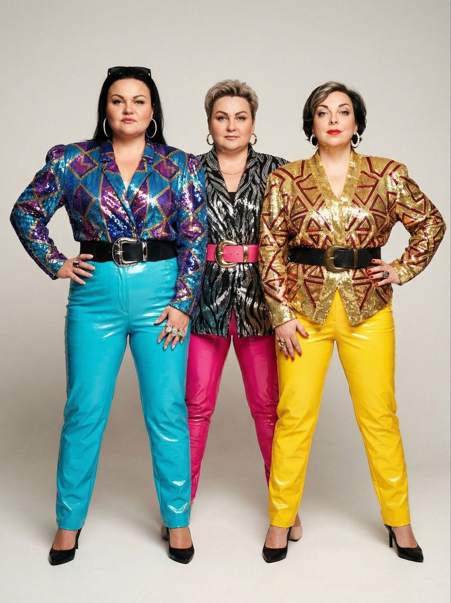 : 😀Заходим в этот бот или в этот 😀Выбираем "нейросети" 😀Нажимаем "Nano Banana" 😀Нажимаем "Nano Banana Pro" 😀Прикрепляем через скрепку свое фото и выбранный промпт 😀Наслаждаемся результатом😍 Создай фото, не меняя черты лица и цвет волос. "Three stylish women in bold 1980s fashion, full-body studio editorial shot, confident poses with hands on hips, high-waisted glossy pants in cyan, hot pink and bright yellow, oversized padded-shoulder jackets with geometric prints and metallic sequins, wide statement belts with large buckles, hoop earrings and chunky rings, satin lapels, pleather shine and sequin texture, clean neutral backdrop, dramatic soft-key studio lighting, high-contrast color grading, vivid saturated retro palette, glossy film look, cinematic fashion photography, highly detailed, photorealistic, 35mm lens, shallow depth of field, 4k —v 5 —ar 4:5" Негативный промт (нежелательное): "lowres, blurry, watermarks, text, extra people, modern casual clothing, messy background,