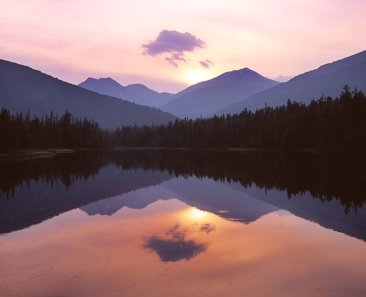 На Приполярном Урале наш проект отметился только лишь в 2002 году, двумя экспедициями, единственным участником которых был сам автор. Причём, до того времени этот район не рассматривался как потенциально интересный. Заглядывался на более удаленные края. А ведь мог и упустить такое замечательное место на земле. Попал туда благодаря одному издательству, которому поступил заказ на издание фотоальбома от Ханты-Мансийского округа. На самом деле Уральские горы занимают лишь незначительную часть территории этой административной единицы, но как закономерно предполагалось, самую симпатичную её часть. Так что решено было отправить меня осваивать восточный склон Приполярного Урала. Ведь только восточный склон относится к Ханты-Мансийскому округу. По Уральскому водоразделу проходит не только граница между Европой и Азией, но и граница областей. При этом решено было побывать там дважды. Первый раз на месяц в июле, дабы запечатлеть летний облик Приполярного Урала и на месяц в сентябре, чтобы застать его в осеннем варианте.