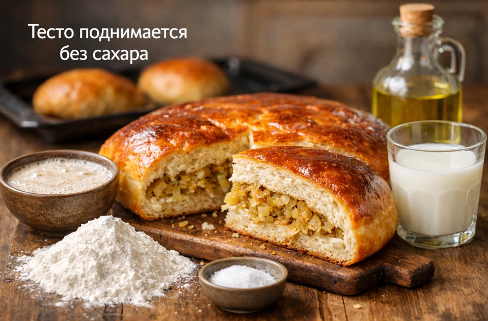 Случилось это совершенно случайно. Я затеяла печь пироги с капустой, уже развела дрожжи в тёплом молоке, добавила муку, соль, масло — и только потом обнаружила, что сахар закончился. Бежать в магазин не хотелось, да и тесто уже было замешано. Я махнула рукой и решила посмотреть, что получится. К моему огромному удивлению, тесто поднялось ничуть не хуже обычного. Даже, пожалуй, лучше — оно было более эластичным, не таким липким и прекрасно держало форму.