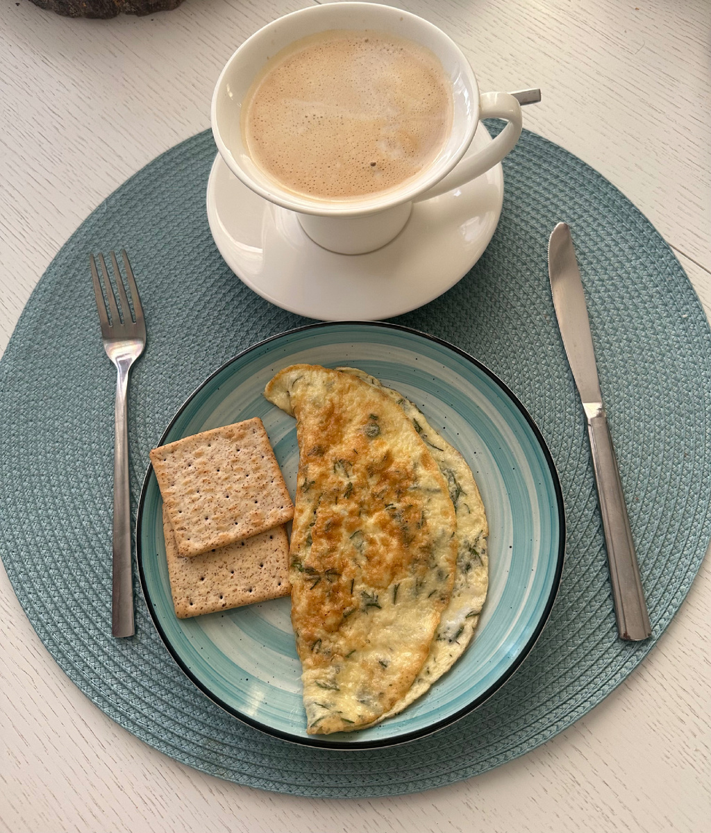 Сегодня я приготовила себе омлет. Ну то есть я попыталась приготовить омлет. Получилась яичница с амбициями. Но с кофе даже она выглядит, как завтрак миллионера!