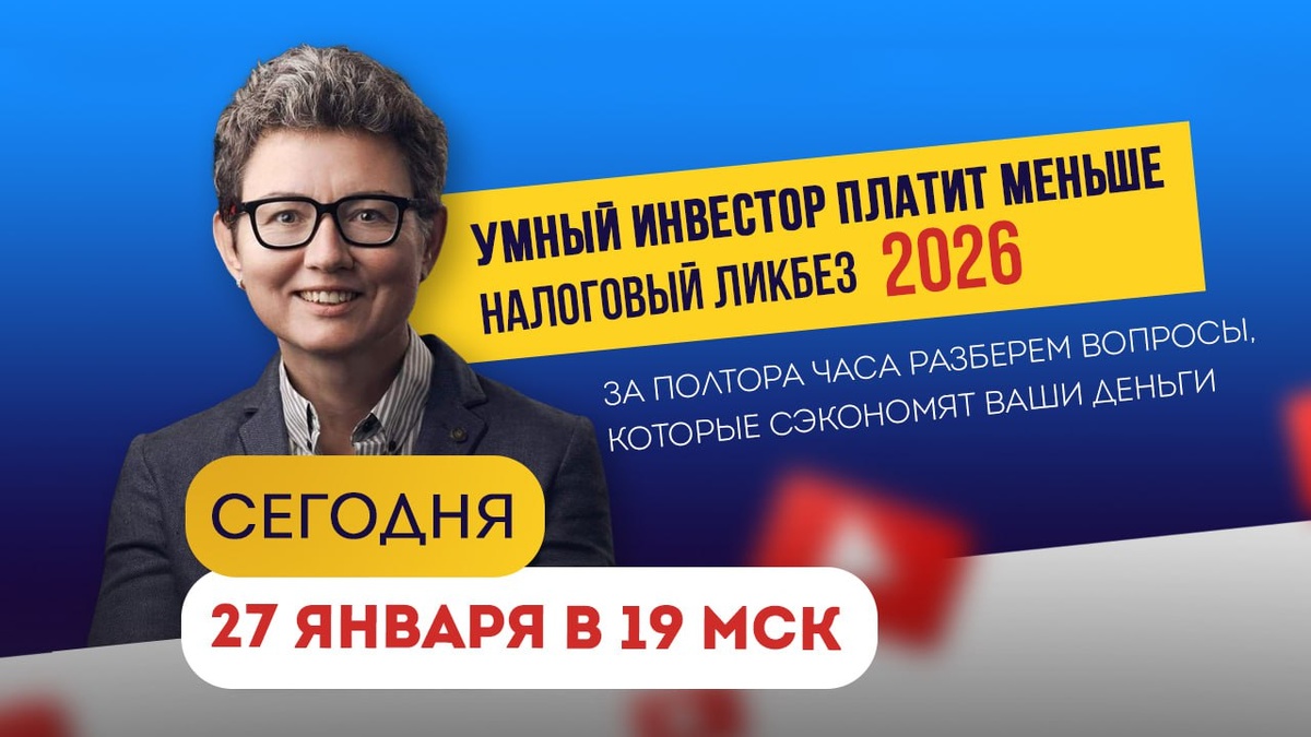 Сегодня в 19:00 мск выходим в долгожданный эфир "Умный инвестор платит меньше. Налоговый ликбез". В этот раз все по плану :) За полтора часа планируем разобрать массу важного для ваших денег: Вот что мы выясним за полтора часа: 🔸 Что облагает налогом: сделки, купоны, дивиденды, депозиты, валюта. И под какой процент 13% или 15%. 🔸 Купоны и НКД: почему налог не берут “дважды”, как считается база. 🔸 Депозиты: необлагаемый минимум, год выплаты процентов, длинные/короткие вклады. 🔸 Налоговые льготы: ИИС, ЛДВ, льготы по отдельным бумагам — что реально работает и где люди чаще всего путаются. 🔸 Когда нужна 3-НДФЛ: какие случаи инвестор закрывает сам. Если не планируете смотреть в эфире, но вам нужна запись, не забудьте записаться здесь ✍️