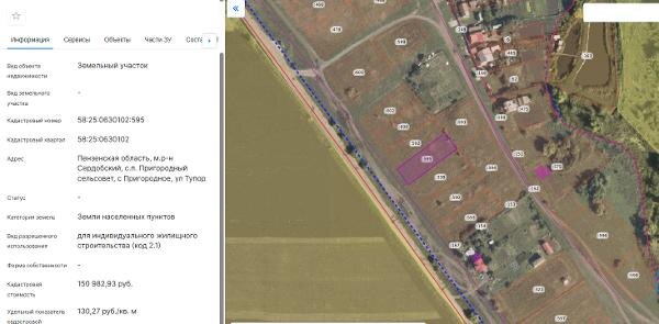 Название: Земельный участок с кадастровым номером 58:25:0630102:595 размещен в черте муниципального образования – Пригородный сельсовет