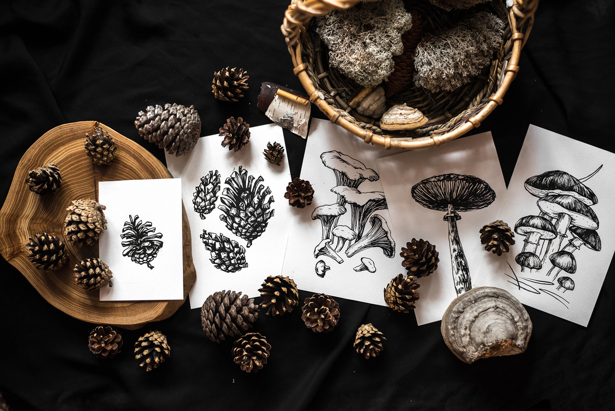 Впервые пером я начала рисовать в 2016 году, когда определялась с темой диплома. И именно тогда впервые нарисовала лесной сюжет тушью. Училась я на дизайнера, поэтому рисовала совершенно разными материалами, но именно черно-белая графика покорила мое сердце и дала огромное пространство для творчества. Когда рисуешь не оглядываясь на цвет можно сосредоточится на передаче текстур и деталей. Возможно, именно поэтому я очень люблю рисовать природу, передавать фактуру старой коры, корней деревьев, ветвей и листьев. Лесная тематика в моём творчестве переплетается со сказочными мотивами. Например, я часто изображаю вот такие лесные избушки. А еще на мою любовь к чёрно-белой графике повлияли старые книжные иллюстрации, гравюры и оттиски.