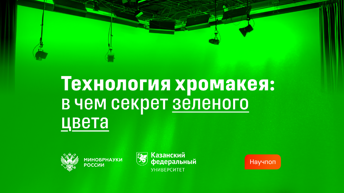 О том, как работает технология хромакея и почему для нее выбран зеленый цвет, рассказывает преподаватель кафедры архитектуры и медиаискусства Института дизайна и пространственных искусств КФУ, ведущий теле- и радиопрограмм научно-популярного телеканала UNIVER TV Александр Фирсов. Хромакей (от англ. chroma key — «цветовой ключ») — технология совмещения изображений, позволяющая заменять фон в кадре. Она активно используется в видеопроизводстве, на телевидении и в кинематографе. Принцип работы заключается в съемке объекта на монохромном фоне (чаще всего зеленом или синем), который затем удаляют в процессе цифровой обработки (процессинга), а на его место помещают другое изображение или видеоряд. Такой процесс замены называется кеингом (от англ. keying — выделение объекта из фона). Процесс создания эффекта включает три основных этапа: Несмотря на возможность работы с любыми цветами, зеленый и синий стали стандартами благодаря техническим преимуществам. Зеленый цвет получил приоритетное прим