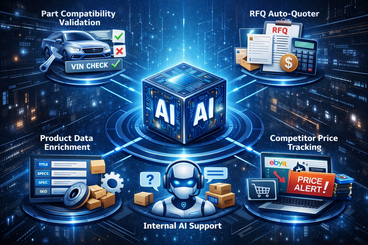 AI-агент проверяет совместимость запчастей с автомобилем по VIN или Year/Make/Model прямо на карточке товара или в корзине. Предотвращает ошибки подбора, снижает возвраты, повышает доверие клиентов и конверсию в продажу. 2️⃣ RFQ Auto-Quoter