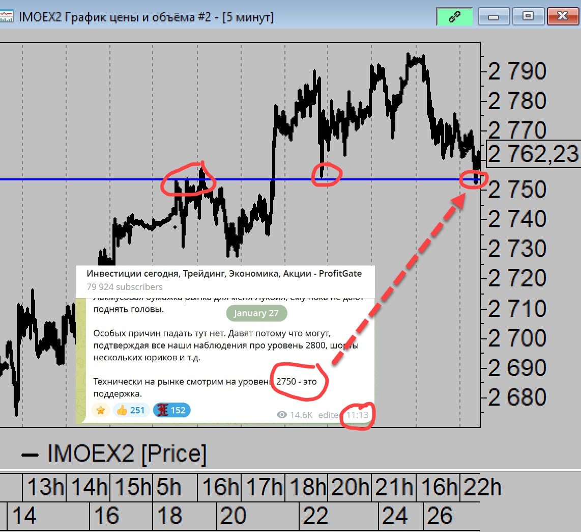 Итак, вчера вам подсветил уровень 2760 точно от которого рынок сильно отскакивал три раза внутри дня