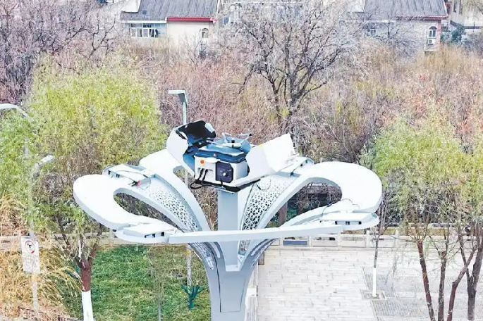 На фонарных столбах в городе Цзинань устанавливают посадочные платформы для дронов