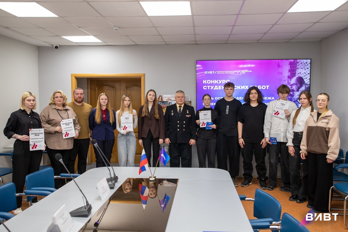 26 января в ВИВТ прошёл конкурс студенческих работ, посвящённый годовщине освобождения Воронежа от немецко-фашистских захватчиков. Студенты реализовали свои идеи с помощью искусственного интеллекта - создали визуальный ряд, внутри него "оживили" имена, образы и истории своих родственников, которые принимали участие в Великой Отечественной войне. Гостем конкурса стал Олег Станиславович Долгушин, капитан третьего ранга в отставке, мастер военного дела. Жюри предстояло выбрать лучшие работы для участия в областном конкурсе «Оживающая история: голоса войны», который пройдет 5 февраля в Областном молодежном центре. В состав жюри вошли: - Ольга Константиновна Цуберт, руководитель департамента по работе со студентами; - Олег Станиславович Долгушин, капитан третьего ранга в отставке, мастер военного дела; - Ольга Викторовна Курочкина, заместитель по учебной работе руководителя департамента по работе со студентами. Поздравляем победителей: 1 место - Анастасия Лахина (АТ-023) 2 место - Алён