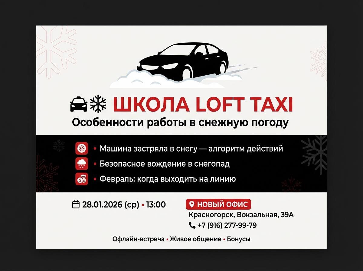 ! Зима в городе — это не только красивые снежные сугробы, но и реальные проблемы для водителей: машины буксуют во дворе, заносит на поворотах, спрос неравномерно скачет, а “где заработать” в феврале — вопрос №1. Поэтому собираемся на практичную встречу — разберём зимние ситуации и заработок по цифрам. 🧰 Темы встречи: Если машина застряла в снегу 🛞 — быстрый алгоритм действий, что можно/нельзя, что реально помогает Как безопасно ездить в снегопад 🌨 — дистанция, торможение, повороты, типовые зимние риски Февраль: когда лучше выходить на линию 💰 — дни/часы с максимальным спросом и как планировать смены без просадок 🎁 Будет тёплая атмосфера, живое общение и небольшой бонус для тех, кто придёт лично 😉 ☄️ Эта встреча — возможность приехать в наш новый уютный офис еще до его официального открытия! (Хотя мы уже полностью в него переехали и работаем там в полную силу!) ⭐️ И просьба: после встречи будем благодарны за отзыв на картах — это поможет прокачать локацию нового офиса и сд