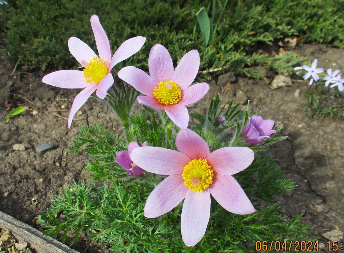 Не всегда весной бывает благоприятная погода для высаживания прострелов в сад. Эти прострелы я сеяла в начале января и только 11 апреля по дождю и грязи высадила в сад последние прострелы.