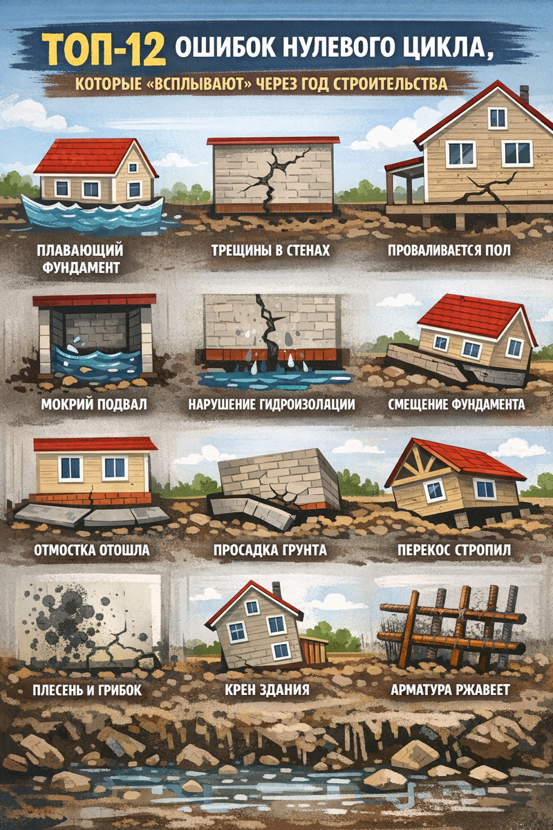 🏚️🧱 ТОП-12 ошибок нулевого цикла, которые “всплывают” через год