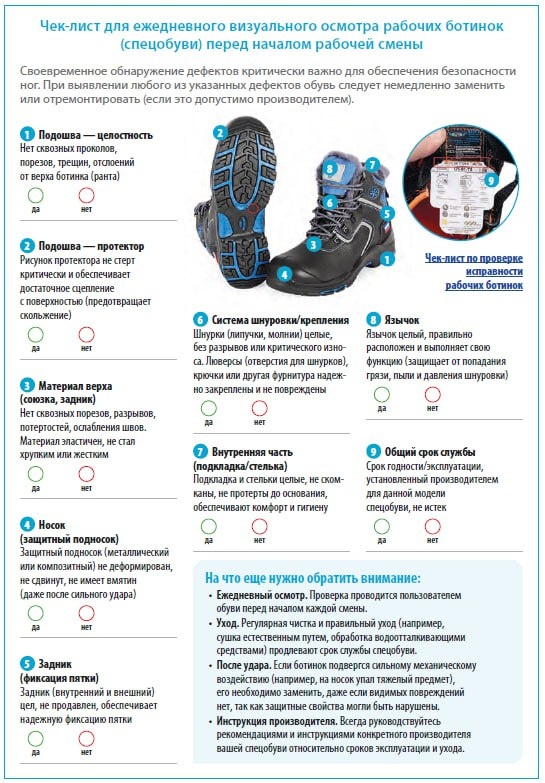 Новый чек-лист — для ежедневного визуального осмотра рабочих ботинок (спецобуви) перед началом рабочей смены.