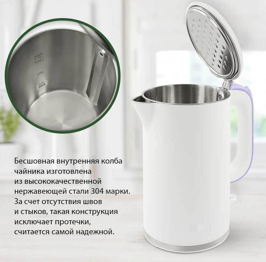 - Почему важен: Пожалуй, единственный бюджетный чайник с настоящей стальной колбой.