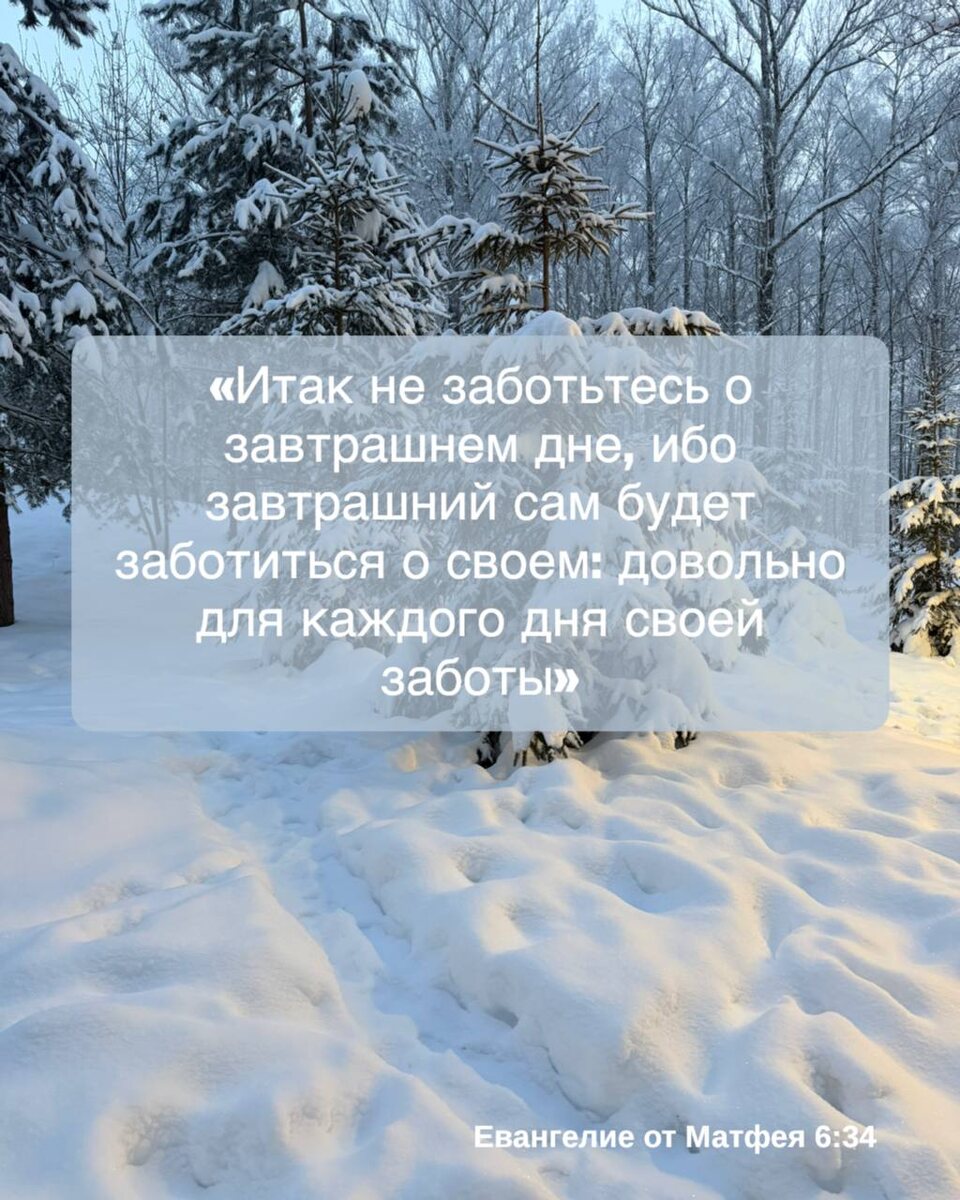 … Евангелие от Матфея 6:34 звучит так: "Итак не заботьтесь о завтрашнем дне, ибо завтрашний сам будет заботиться о своем: довольно для каждого дня своей заботы." (Синодальный перевод) Этот стих является частью Нагорной проповеди, где Иисус учит о важности доверия Богу и отказе от чрезмерного беспокойства о материальных вещах. Вот несколько ключевых моментов для понимания этого стиха: "Не заботьтесь о завтрашнем дне": Это не означает, что мы не должны планировать или быть ответственными. Скорее, это призыв не поддаваться тревоге и страху перед будущим. Иисус учит нас полагаться на Божью заботу о нас. "Завтрашний сам будет заботиться о своем": Каждый день приносит свои вызовы и заботы. Беспокойство о том, что может произойти в будущем, истощает наши силы и не позволяет нам эффективно справляться с сегодняшними проблемами. "Довольно для каждого дня своей заботы": Сосредоточьтесь на настоящем моменте и делайте все, что в ваших силах, сегодня. Доверьте будущее Богу и верьте, что Он