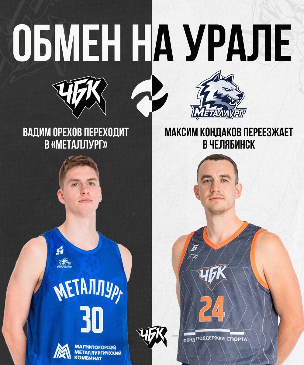 В трансферной сделке задействовали Вадима Орехова и Максима Кондакова В баскетбольной Суперлиге громкий трансферный обмен игроками совершили челябинский клуб «ЧБК» и магнитогорский «Металлург». Вадим Орехов переезжает на юг области, а Максим Кондаков – в южноуральскую столицу. В обеих командах надеются, что смена обстановки и новые задачи вдохнут свежую струю в игру спортсменов и усилят коллективы перед важными матчами, сообщает корреспондент ИА «Первое областное». «После изменений в тренерском штабе нашей команды у Максима сократилось игровое время. Мы обсудили с ним эту ситуацию и пришли к решению, выгодному каждой стороне, — об обмене», — отметил спортивный директор БК «Металлург» Александр Амелин. В штабе «ЧБК» также позитивно настроены относительно обмена с географическими соседями. Спортивный директор челябинского клуба Вадим Доманов поблагодарил Вадима Орехова за игру в первой части сезона-2025/2026, отметив, что игрок был важным звеном команды. «Однако в спорте случаются момент