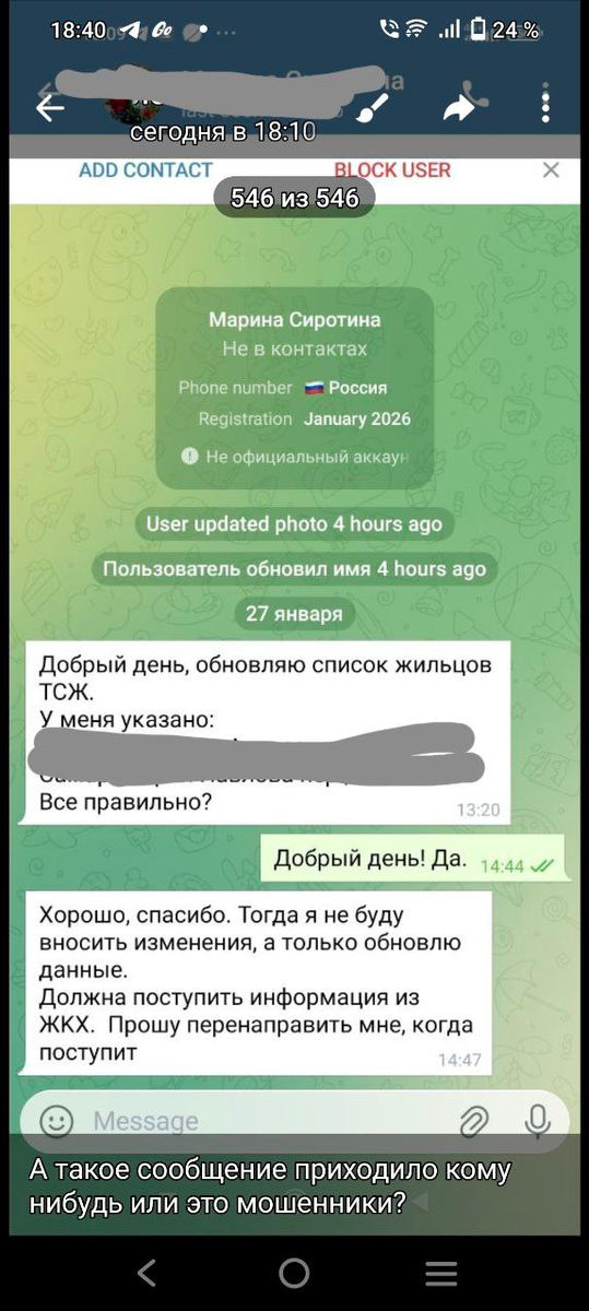 Одно но: скрины не успела сделать, чтобы доказать свой рассказ. Но всё так и было. Итак. Я много раз читала в Сети, что мошенники часто стали создавать якобы рабочие чаты в Телеграмме. С аватарками реальных коллег по работе, с их именами. Приходит приглашение в такой чат, вступаешь - ну потому что же вокруг все свои! А дальше возможны варианты. Разные, но все они неприятные. Что было со мной. Работаю дома, как обычно. Пиликает Телеграмм, захожу проверить. А там - сообщение мне. Автор - Олеся Носова. Не только лишь всем известно это имя, но я проработала в "Комсомольской правде" 10 лет, поэтому знаю: сейчас Олеся - главный редактор и генеральный директор. Правда, в 2012 году, когда я уезжала из Москвы и увольнялась из "КП", Олеся была главой сайта газеты. Так как мы лично знакомы, конечно, я зашла в этот чат. Правда, меня смутило качество фото на аватарке. Нажала на неё, попала в профиль, а там надпись: "Недавно создан" - как-то так примерно. После этого я стала читать: а что, собствен