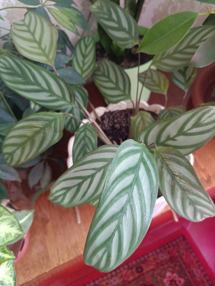 Калатея — невероятно красивое комнатное растение. Её листья словно расписаны, а движение листьев утром и вечером делает её будто живой. Но красота требует внимания: калатея чувствительна к поливу, воздуху и освещению. Чтобы калатея стала настоящим украшением интерьера, достаточно соблюдать несколько простых правил ухода. Освещение - летом полутень, зимой яркий свет. Калатея любит яркий рассеянный свет, прямые лучи оставляют ожоги и высветляют рисунок. Для выращивания калатеи идеальны восточные и северные окна, на южных окнах выращивание рекомендуется в глубине комнаты. Полив теплой, мягкой водой и строго по режиму. Перед поливом воду необходимо отстоять, также хорошо поливать талой или фильтрованной водой. Почва должна быть постоянно слегка влажной, но не мокрой, пересушка приводит к скручиванию и подсыханию листьев. Перелив вызывает гниль и потерю тургора. Зимой полив сокращают. Влажность воздуха — главный секрет успеха. Идеальная влажность для калатеи – 60 – 70%. Ставьте рядом увлаж