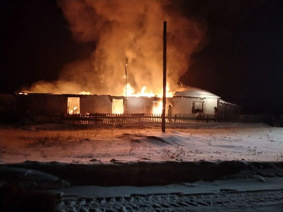 В Башкирии в деревне Аксарово сегодня ночью горел кирпичный 4-квартирный дом