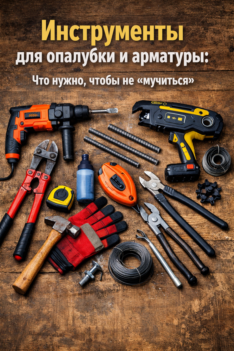 Ниже — практичный минимум: инструменты для опалубки и арматуры, которые реально экономят день работы и помогают сделать аккуратно. Это особенно актуально на участках с плотной глиной и тесными подъездами, как часто бывает у нас в Таганроге и по Приазовью.