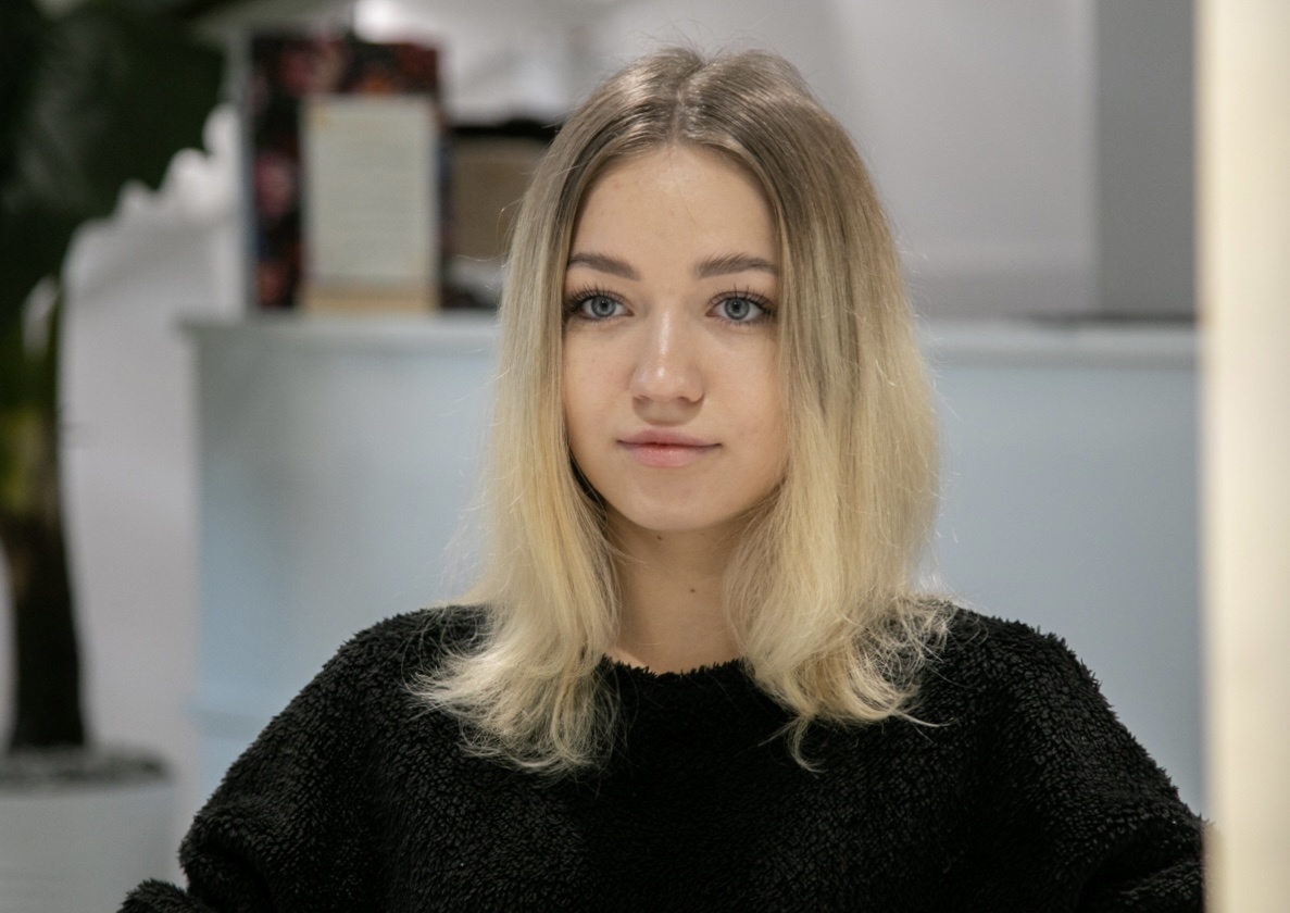 Наверное, самый частый запрос в салонах красоты – это не желание кардинальных перемен, а именно обновление своего привычного и комфортного образа, в котором нравится находиться и который просто хочется освежить. Именно с такой задачей в наш салон пришла Олеся – хотелось обновить цвет и было желание попробовать новый диапазон длины для стрижки. На консультации мы обратили внимание, что волосы длинные и ранее уже осветленные. По длине много блонда, а значит, полотно чувствительное и кончики истончены – такая история требует к себе бережного подхода. В таких случаях важно работать деликатно и сохранить баланс между обновлением цвета и сохранения качества волос. Для окрашивания наш топ-стилист Юлия Назарова выбрала технику шатуш. Это работа с отступом от корней, при которой цвет будто растворяется в длине, создавая эффект естественно выгоревших волос. Шатуш особенно хорошо подходит для ранее осветленных волос. Он позволяет сохранить качество полотна и избежать резких цветовых границ. Пере