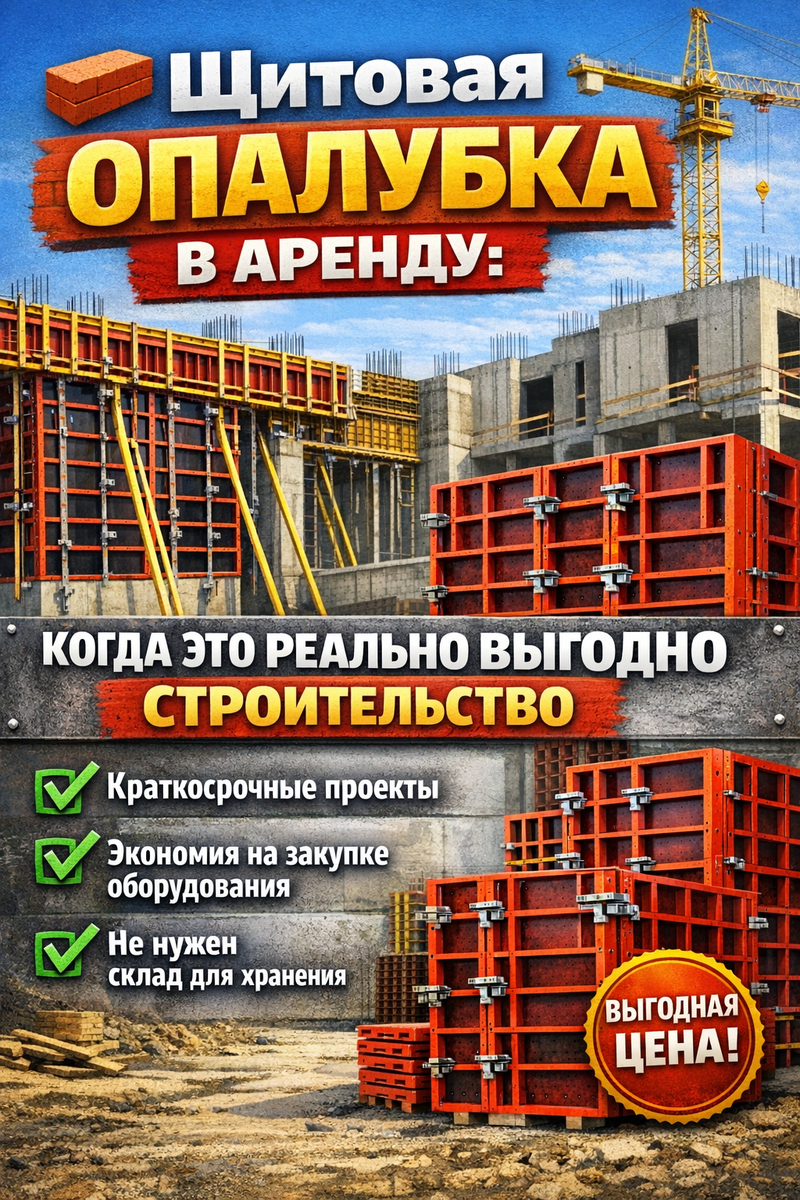 Окупаемость аренды — это не «щитовая опалубка цена за день». Считать надо полным пакетом: аренда + доставка туда/обратно + залог + добор комплектующих (замки, стяжки, подкосы) + простой, если Вы не успели вовремя.