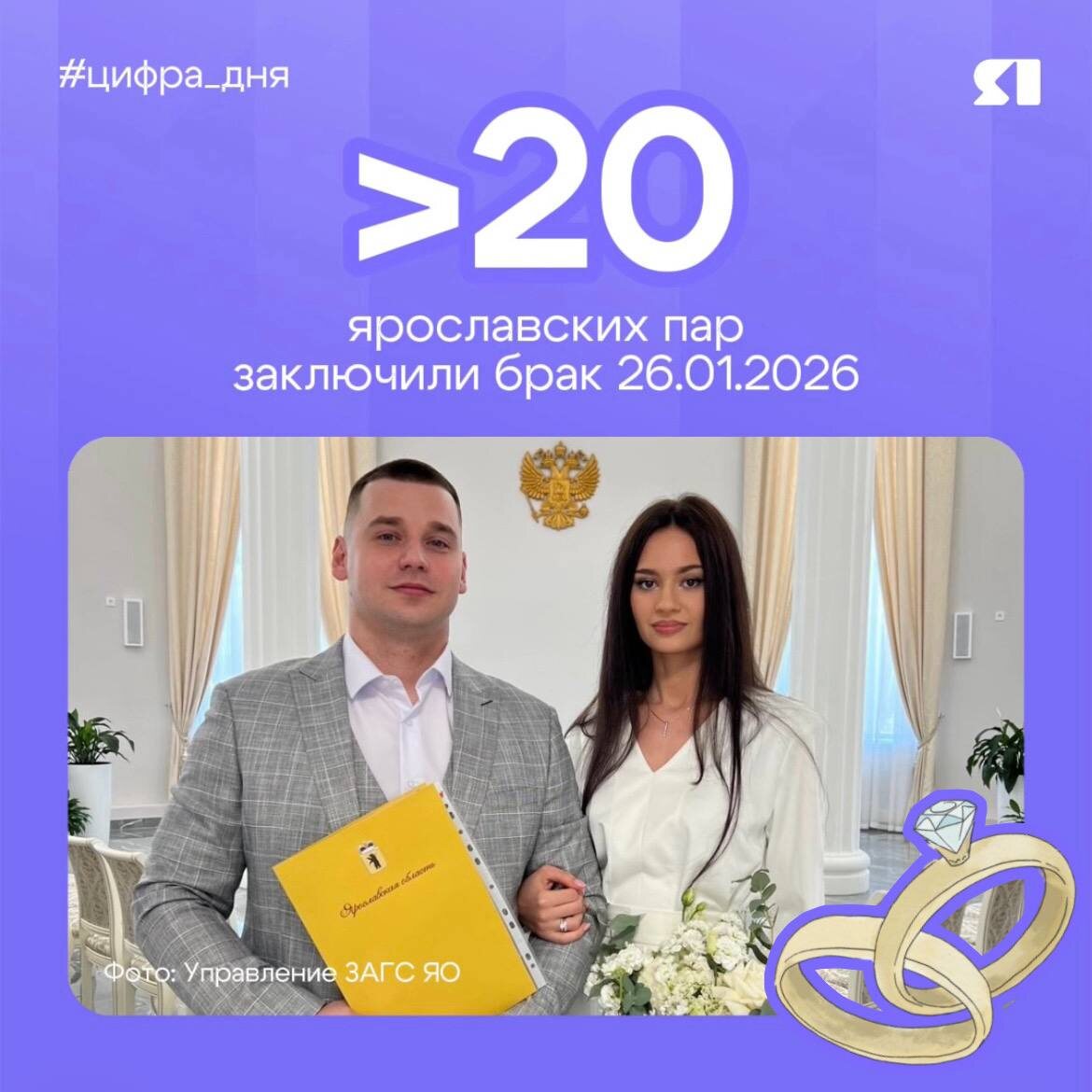 Более 20 пар в этом году выбрали для заключения брака красивое сочетание цифр – 26.01.2026. Символично, что 26 января отмечают День супругов. Пожелаем молодоженам бесконечной любви и благополучия ❤️ 💚 Подписаться на «Тelegram» | Подписаться на канал в «МАХ»