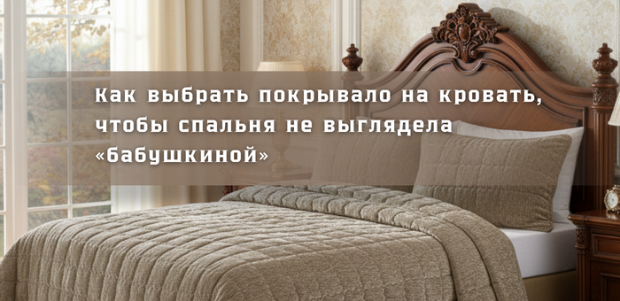 Покрывало — это финальный штрих спальни. Именно оно задаёт общее впечатление: либо интерьер выглядит собранным и актуальным, либо мгновенно уходит в ощущение «устарело». Хорошая новость в том, что дело не в цене и не в модных узорах. Всё решают фактура, плотность и цвет. Современный интерьер не любит активные принты. Он строится на тактильности. Мягкая микрофибра, велюр с рельефной поверхностью, жаккард с бархатистой структурой — такие материалы создают ощущение глубины и уюта даже без рисунка. С точки зрения технологии это ещё и практично: полотно приятно на ощупь, не цепляется, не образует затяжек и долго сохраняет аккуратный внешний вид. С точки зрения дизайна — спальня выглядит спокойной, «дышащей» и визуально дорогой. Частая причина «бабушкиного» эффекта — покрывало, которое теряет форму. Качественная стёжка фиксирует наполнитель и не даёт ткани собираться складками. Такое покрывало всегда выглядит ровно, даже если кровать застилают наспех. Оптимальная плотность — 425–450 г/м². Эт