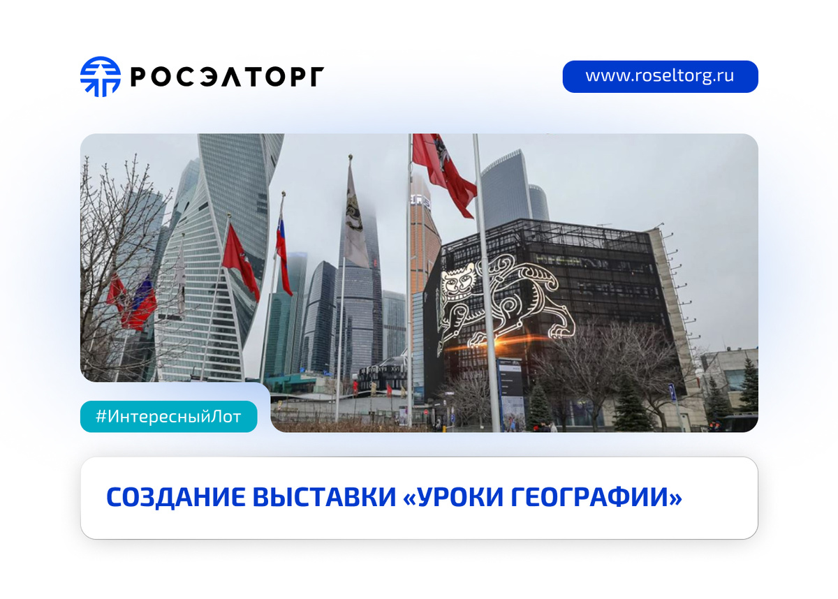 На Росэлторг опубликована процедура по созданию выставки «Уроки географии» в Национальном центре «Россия». 🗺 Экспозиция — это рассказ об истории нашей земли и её рек, путей, которые наши предки проложили, и звёзд, помогавших ориентироваться в бескрайних просторах. Это также размышление о том, как нас видят извне и как мы сами определяем своё место на карте. Цель проекта — показать многообразие и потенциал нашей страны. Узнать подробнее о процедуре