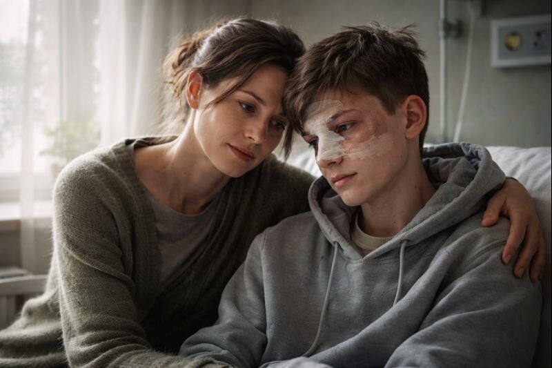 Свет в коридоре больницы — белый, холодный, как простыня. Свет в кабинете, где врач говорила быстро, аккуратно, будто складывала осколки фразы так же, как потом будут складывать лицо её сына.