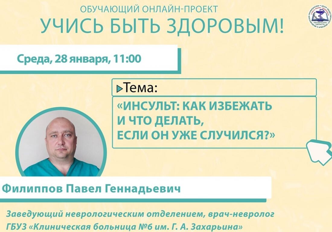 28 января состоится очередная прямая трансляция онлайн-проекта «Учись быть здоровым!». Заведующий неврологическим отделением, врач-невролог ГБУЗ «Клиническая больница №6 им. Г.А. Захарьина Павел Филиппов» проведет эфир по теме «Инсульт: как избежать и что делать, если он уже случился?». В Пензенском областном центре общественного здоровья и медицинской профилактики отметили, что с 26 января по 1 февраля 2026 года проходит неделя неинфекционных заболеваний. Она направлена на информирование населения о факторах риска развития болезней. В их числе курение, неправильное питание, алкоголь, недостаток движения, стресс и другие. Ранее представители Пензенской областной станции скорой медицинской помощи отреагировали на комментарий в соцсети, автор которого заявила, что у врачей, приехавших к ее внуку, не оказалось необходимых лекарственных препаратов.