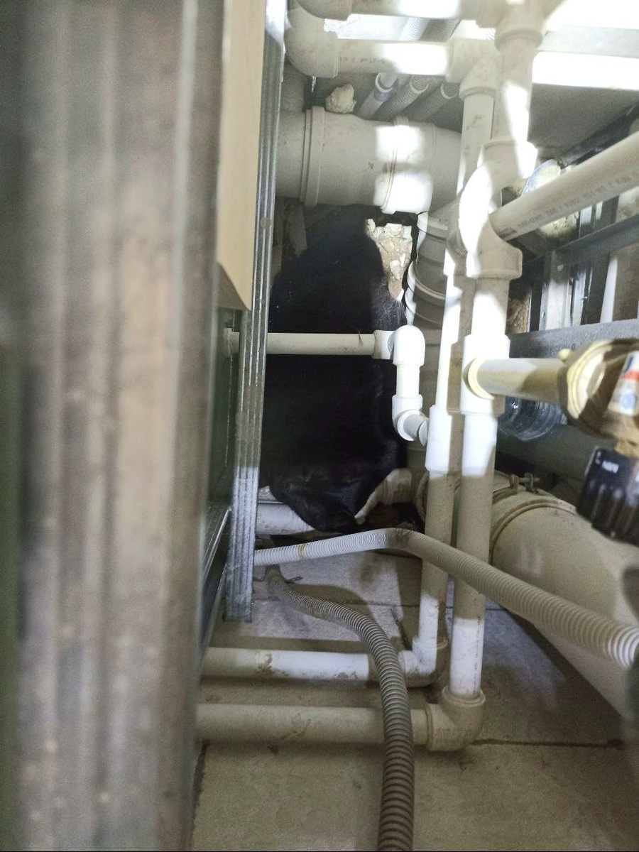24 января 2026 г. 🔻Помощь животным пр-д Измайловский Взрослый котик, не потерявший интерес к жизни и приключениям, решил "тряхнуть стариной" и провести ревизию стояка водоснабжения, который из-за прорыва трубы на небольшое время оставили открытым. Что-то во время проведения работ пошло не так, и ревизор с унитаза провалился в пространство между ванной и стеной. Расстояние между трубами узкое, но кот лишний раз доказал, что он жидкость, и стек вниз. Котя очень хотел выбраться, старался так, что даже коготочки сломал и подушечки на лапках стёр. Но, как вы уже поняли, посмотрев на котика, сам он вылезти не мог ну никак. Хозяева пробовали помочь питомцу, но все тщетно. О сохранности имущества речи не шло, люди очень переживали. Спасатели выпилили часть гипсокартонной перегородки и освободили старичка. И да, Котю взяли из приюта 7 лет назад, он попал под машину и был очень тяжело травмирован. Такой вес обусловлен не перееданием, а состоянием здоровья. Хозяева заботятся о нём, Котя наб