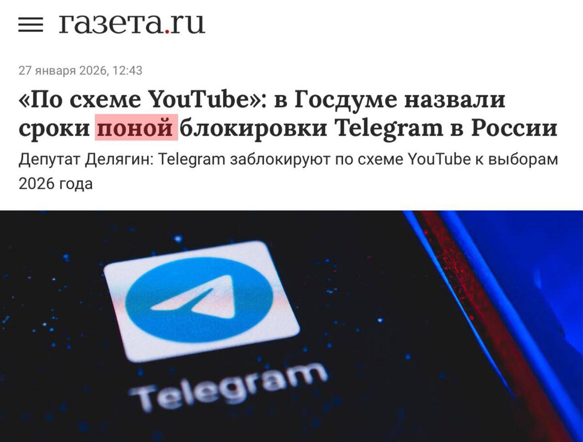 👉 Ряд СМИ сообщил, что Telegram полностью заблокируют в сентябре 2026 года