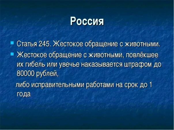 Именно по причине огромной общественной опасности жестокого обращения с животными, законодатель и поместил ст.245 УК РФ в главу 25 УК РФ – «Преступления против здоровья населения и общественной нравственности».