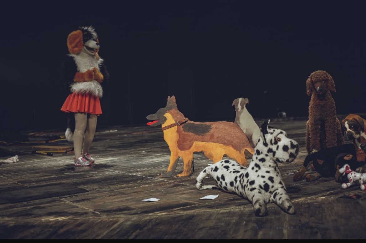 Мария Смольникова (любимая актриса режиссера) запредельно талантливо играет Муму, которая на сцене в качестве девочки Маши, внучки актера, играющего Тургенева. Эта 38 летняя актриса с абсолютно детской непосредственностью, пластикой и речью, дарит ощущение театрального чуда. Все мы помним, как в старых советских фильмах взрослые дяди и тети играют «молодежь» ( до «Джульетты» надо дослужиться) и это смотрится комично, не смотря на возможности, которое дарит кино (грим, монтаж и пр.). А здесь - волшебство. Абсолютный ребенок, только выше привычного. Да и не просто девочка, а еще и немного собака.. она бегает по сцене, ловит практически в прыжке подстреленных уток (ружье стреляет, утки падают, собаки лают).