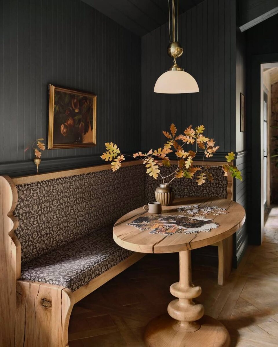 Стиль загородного, часто охотничьего коттеджа, расположенного в гористой или лесной местности. Сегодня на повестке Кантри (локация формирования — Северная Америка, северные штаты) Интерьер строится вокруг архитектуры дома и его функциональности. Черты стиля: • сруб • мебельные системы хранения, интегрированные в архитектуру стен • потолочные балки • деревянный потолок • каменная кладка • досчатый пол • мебель из массива дерева (американский орех, дуб) • крупные порталы каминов с грубой облицовкой • трофейная и промысловая тематика декора (охота, рыбалка) • возможные включения современной мебели или освещения • тёплая тёмная цветовая палитра Стилистические отсылки, которые могут встречаться: • романский стиль • средиземноморский • античный стиль • прованс Отсылки проявляются в работе с массивными формами, камнем и деревом, а также в пропорциях пространства. Строго отсутствует: • обои • каменный пол • фрески • молдинги • легкомысленный декор • вензеля • антикварная мебель историчес