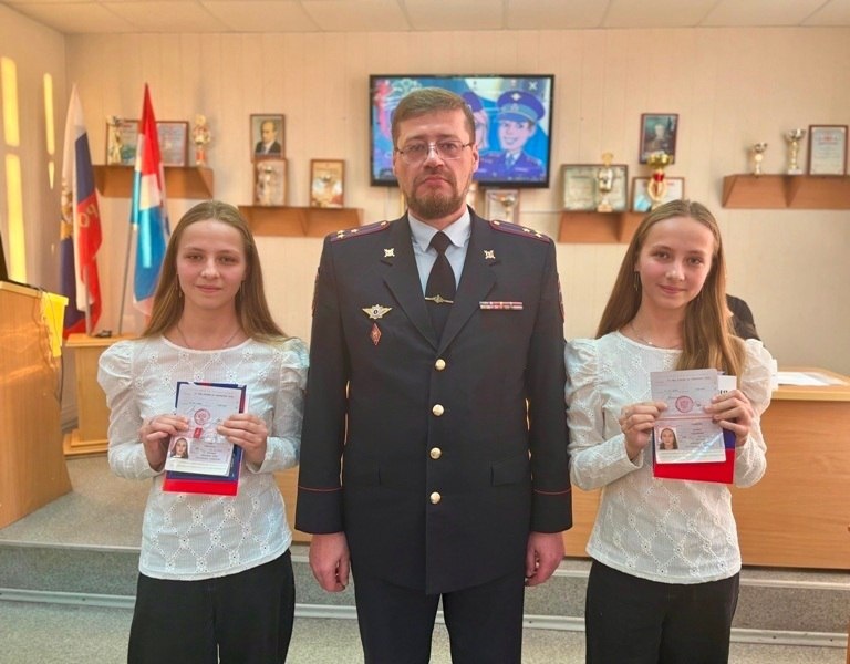 В отделе МВД России «Чусовской» состоялась торжественная церемония вручения паспортов сёстрам-близнецам Чудиновым. Полина и Анна учатся в 7 классе «Гимназии», и недавно им исполнилось 14 лет. Начальник территориального отдела внутренних дел Вадим Козырев поздравил сестёр с таким важным событием, подчеркнув, что нужно со всей ответственностью относиться к полученному документу: «Паспорт – символ вашей принадлежности к великой стране, теперь у вас есть не только права, но и обязанности, будьте достойными гражданами России». Вместе с главным документом гражданина Российской Федерации полковник полиции вручил девочкам Конституцию Российской Федерации, а также значки и обложки для паспорта от «Движения первых». Пресс-служба Отдела МВД России «Чусовской»