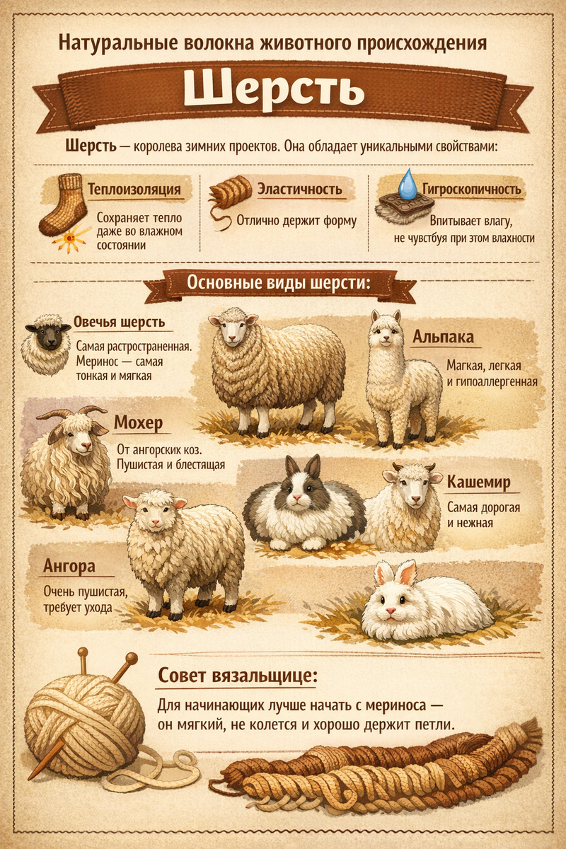 Шерсть — королева зимних проектов. Она обладает уникальными свойствами: