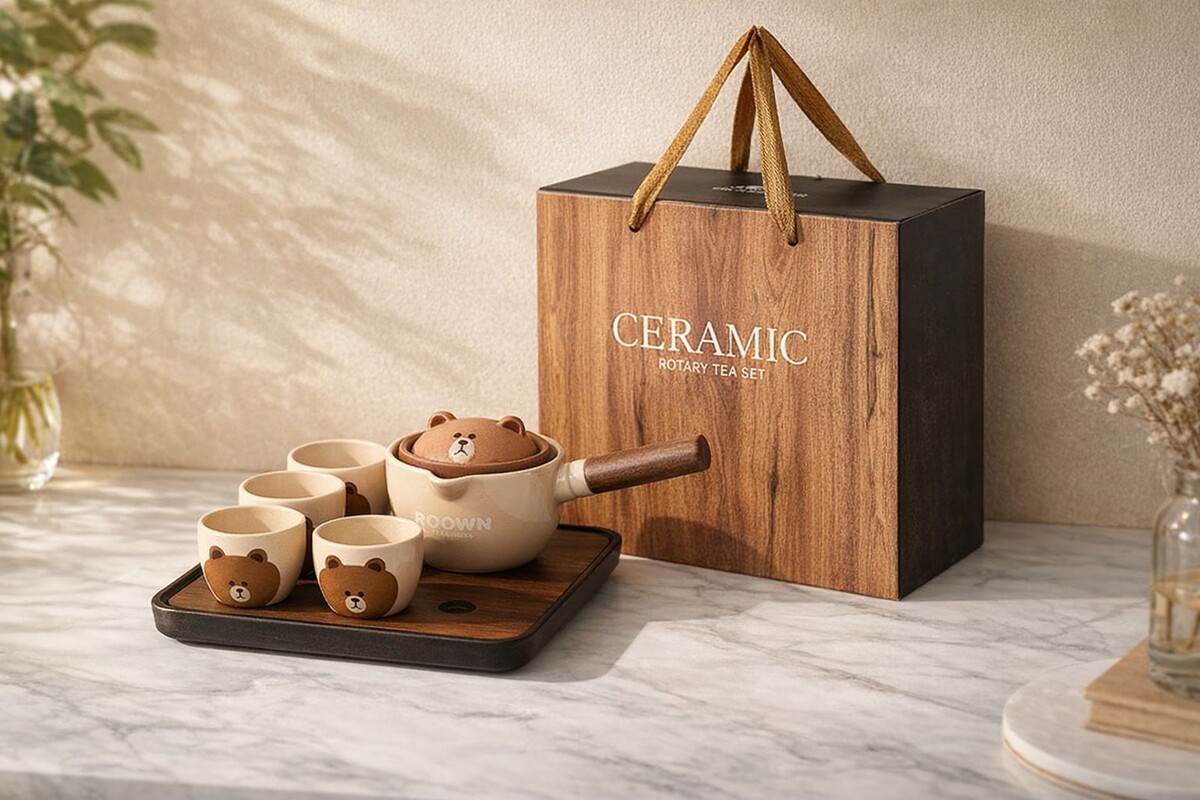 Если хочется, чтобы чайная пауза выглядела как маленький ритуал (а не “пакетик в кружку”), этот набор отлично попадает в настроение. Он сделан в тёплой бежево-карамельной гамме и выглядит как аккуратный интерьерный объект: спокойные формы, приятная матовая керамика и милый характерный акцент на крышке. [ Перейти к товару на AliExpress ] Комплект продуман “под подачу”: Такой формат особенно удобен, если ты любишь заваривать проливами (пуэр, улун, красные чаи) или просто хочешь, чтобы процесс выглядел эстетично и “собранно”. [ Перейти к товару и проверить цену ] Набор визуально очень “тёплый”: древесные и карамельные оттенки, уютная фактура, мягкие формы. Он хорошо заходит в: Плюс это тот редкий случай, когда предмет одновременно милый (персонаж на крышке/чашках) и не выглядит детским — скорее “дизайнерская мелочь”, которую хочется держать на виду. [ Перейти к товару и проверить цену ] Это не “обязательная вещь”, а приятный апгрейд атмосферы. Если тебе важно, чтобы чай выглядел как со
